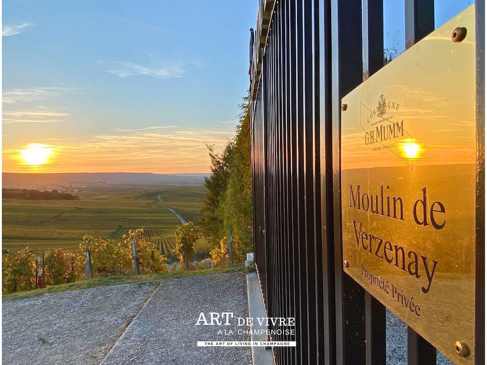 Sous le célèbre Moulin de Verzenay, la Montagne de Reims déploie ses rangs infinis de vignes dorées, baignées d’une lumière rasante. Le matin, les brumes enveloppent les coteaux ; à midi, le soleil fait scintiller chaque feuille ; le soir venu, la lumière s’adoucit, réchauffant les collines d’une lueur rougeoyante.