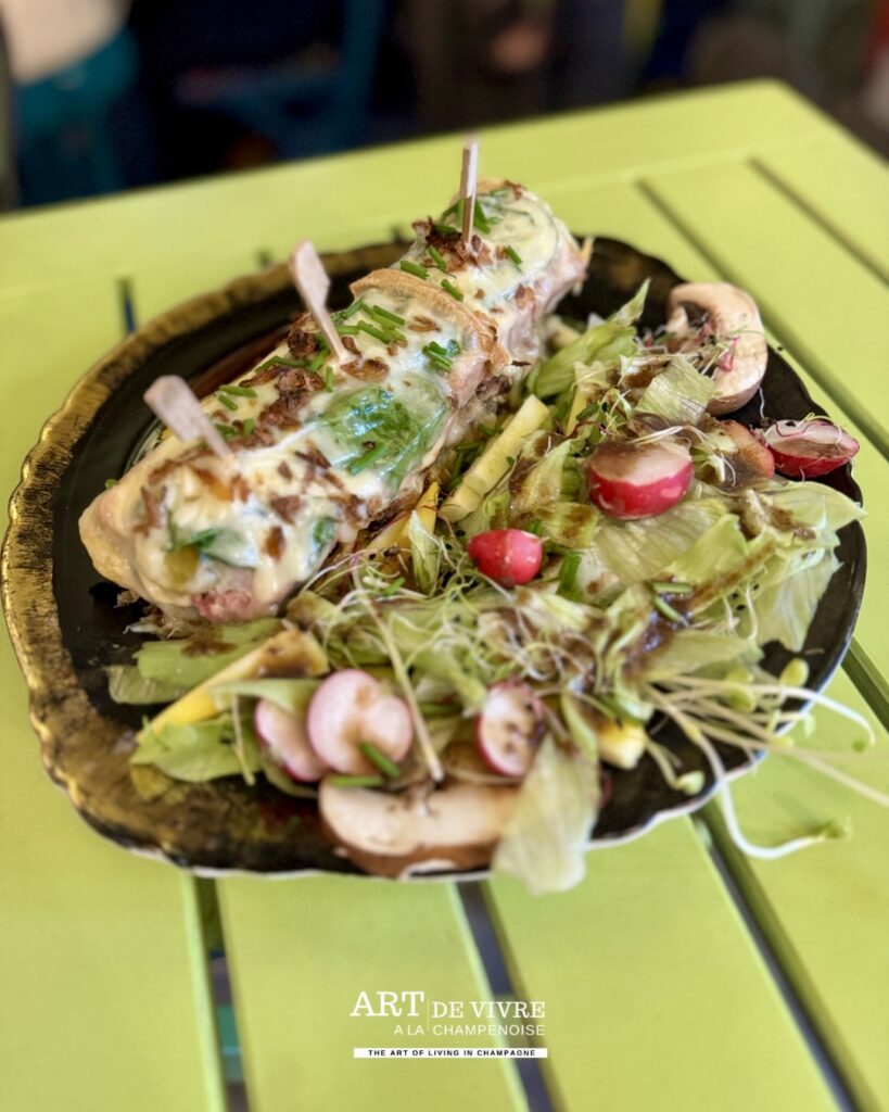 Mais parmi les incontournables de la maison, un plat semble mettre tout le monde d’accord : le fameux croque-monsieur au jambon de Reims. Et quel croque-monsieur.