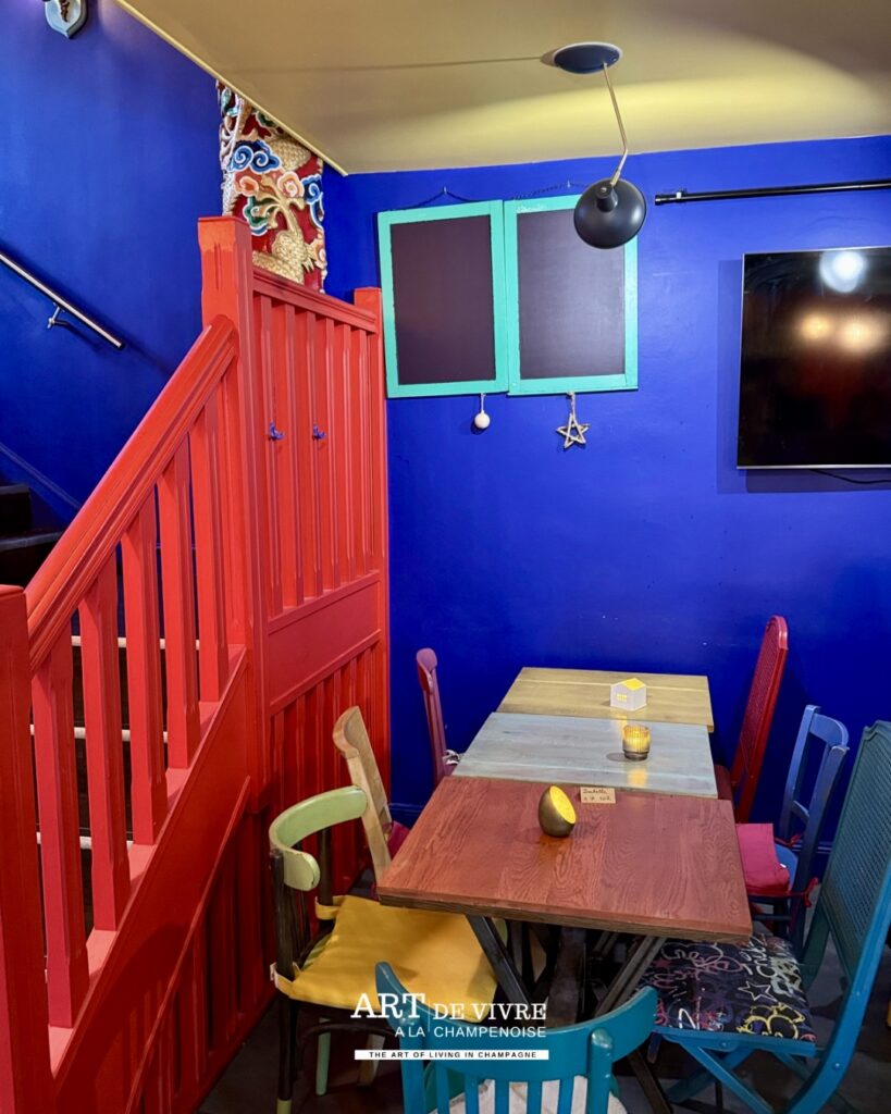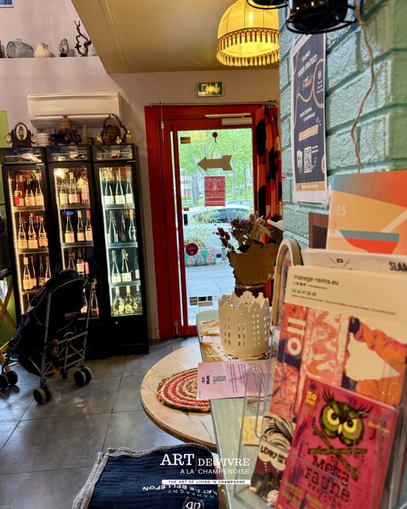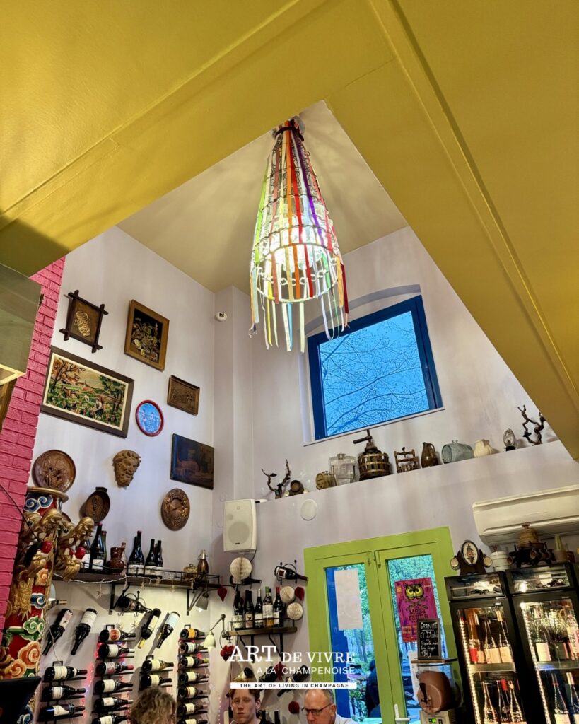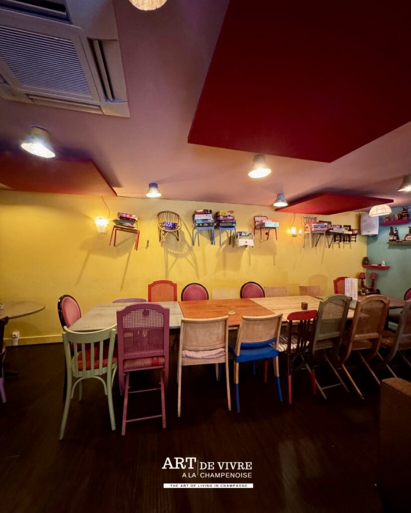 Dans un centre-ville rémois où les concepts se multiplient, certains lieux parviennent encore à se distinguer grâce à une personnalité affirmée. Ici, pas de décor figé ni d’atmosphère guindée. Dès l’entrée, le ton est donné : couleurs éclatantes, mobilier chiné, objets de récupération et énergie solaire composent un décor vivant, presque théâtral, où chaque détail semble raconter une histoire.