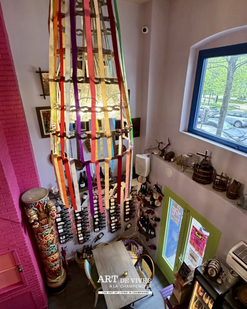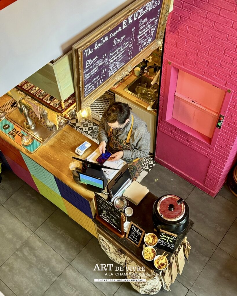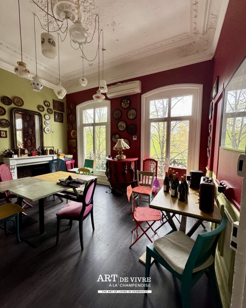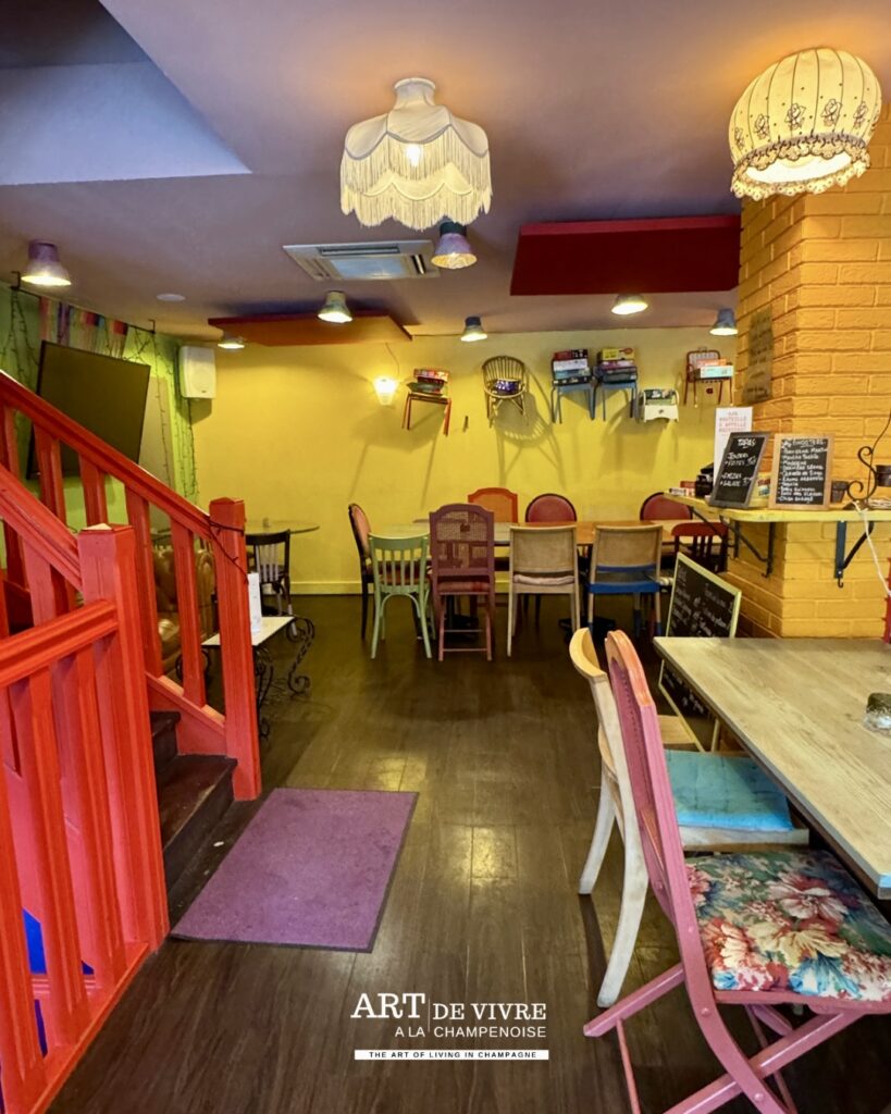 Dans un centre-ville rémois où les concepts se multiplient, certains lieux parviennent encore à se distinguer grâce à une personnalité affirmée. Ici, pas de décor figé ni d’atmosphère guindée. Dès l’entrée, le ton est donné : couleurs éclatantes, mobilier chiné, objets de récupération et énergie solaire composent un décor vivant, presque théâtral, où chaque détail semble raconter une histoire.