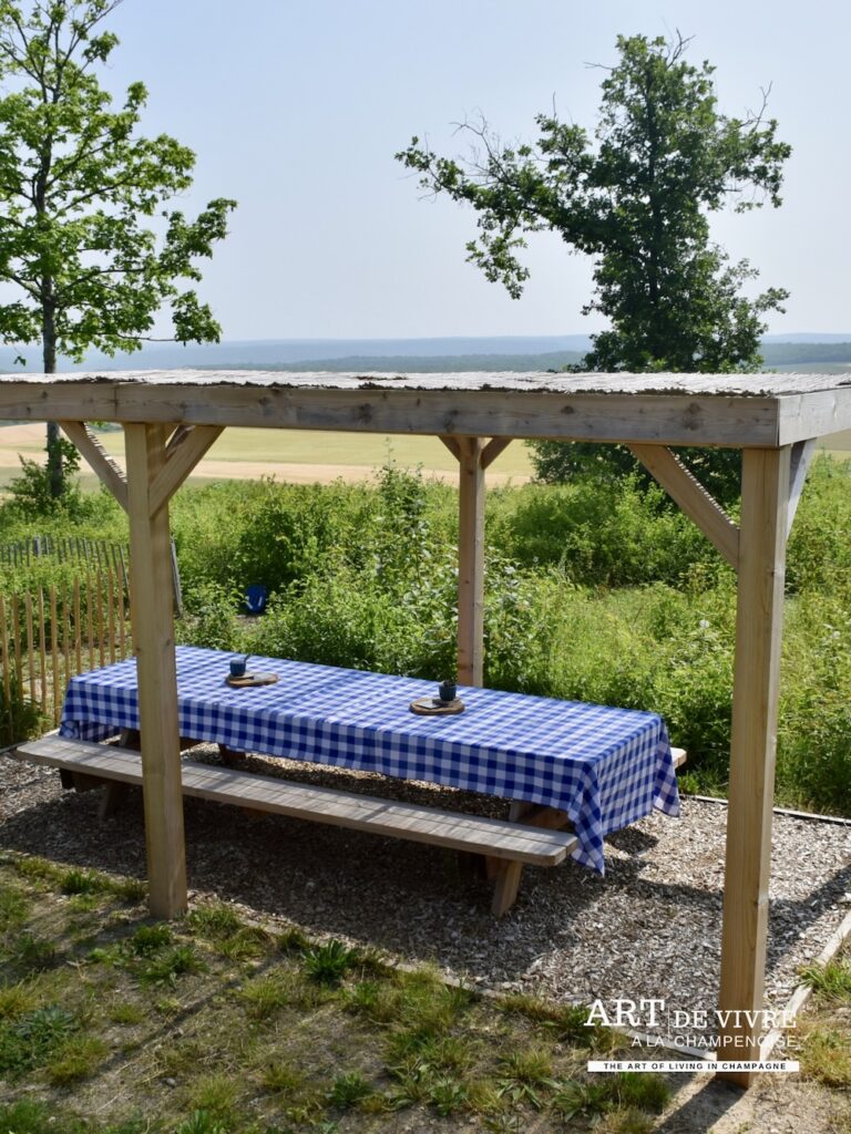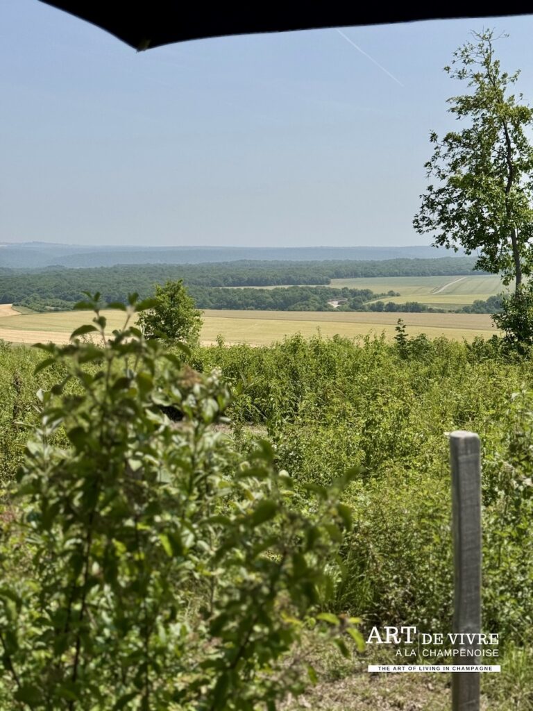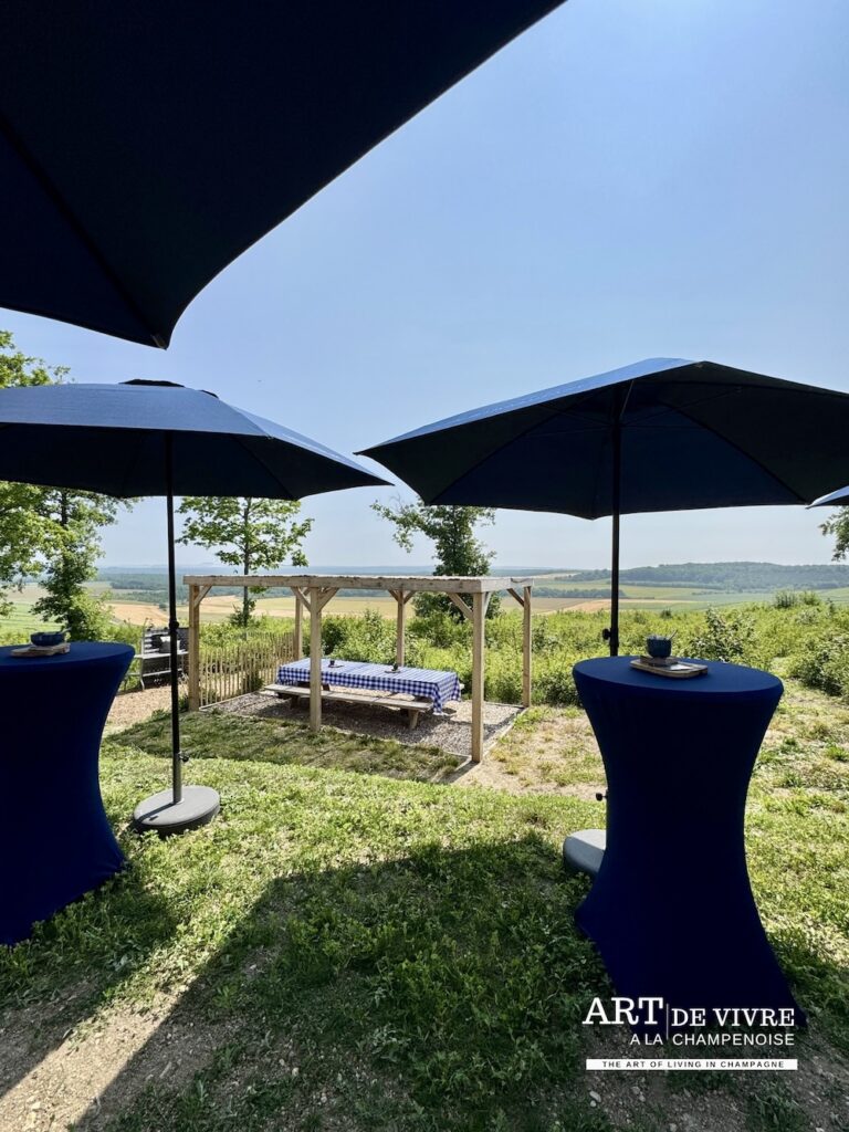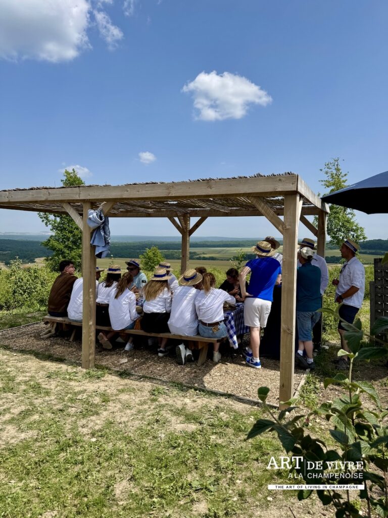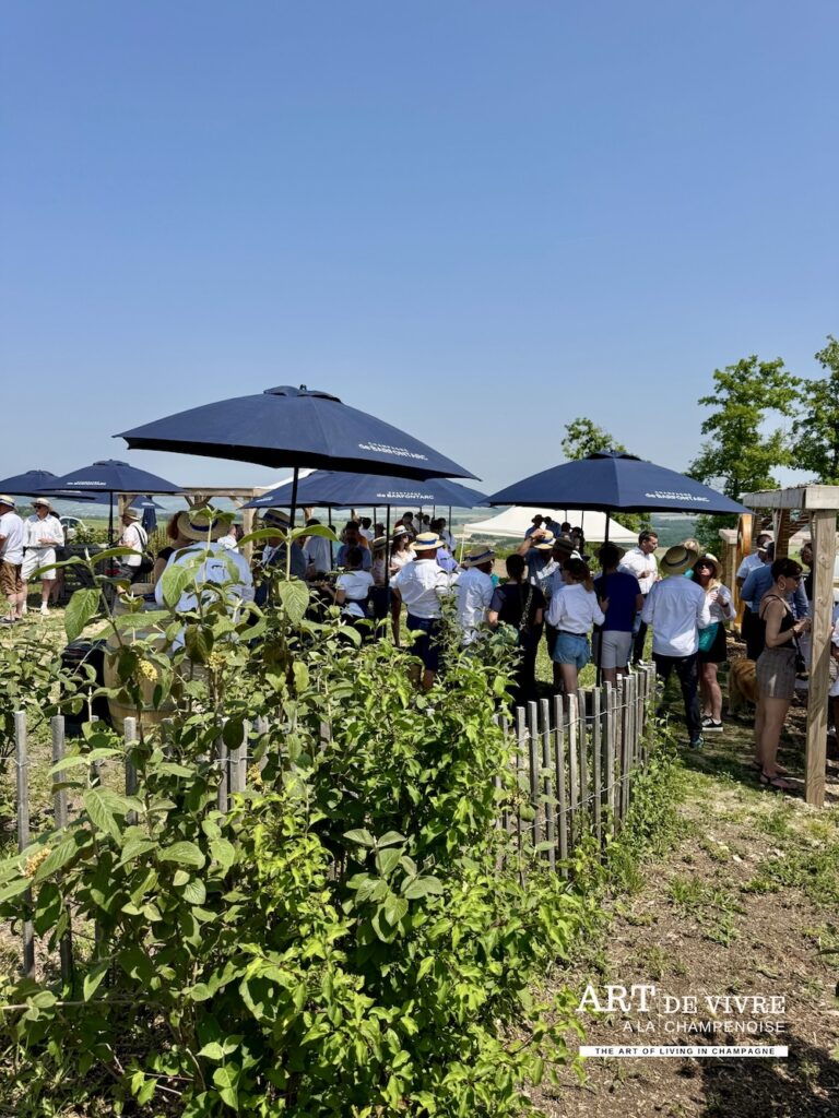 L’aménagement du lieu a été conçu dans une logique de réemploi et de respect de l’environnement : pupitres transformés en brise-vents, palettes devenues assises, pergolas en bois offrant ombre et quiétude… Chaque détail reflète l’engagement durable de la Maison. Une démarche saluée le 13 juin lors de l’inauguration officielle, ponctuée par la pose symbolique de la plaque « Ambassadeur des Coteaux, Maisons et Caves de Champagne ».