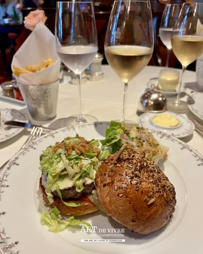 Le contraste est particulièrement intéressant : une cuisine accessible dans son format, associée à une signature champenoise reconnue, le tout dans un écrin d’exception. Une manière contemporaine de vivre le Champagne, loin des codes figés, dans un moment du quotidien.