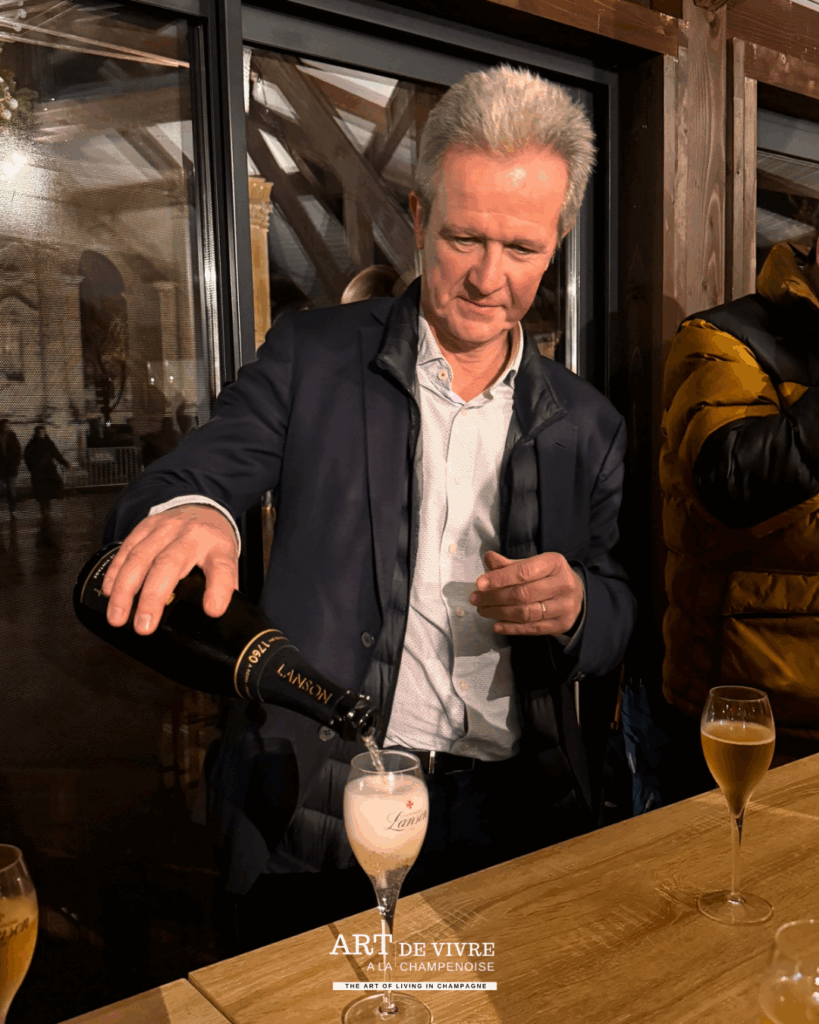 Présentation de la Cuvée Le Vintage 2014 lors du Marché de Noël de Reims au Kiosque Lanson par Hervé Dantan (Chef de Caves) et François Van Aal (DG) – L’abus d’alcool est dangereux pour la santé; A consommer avec modération.