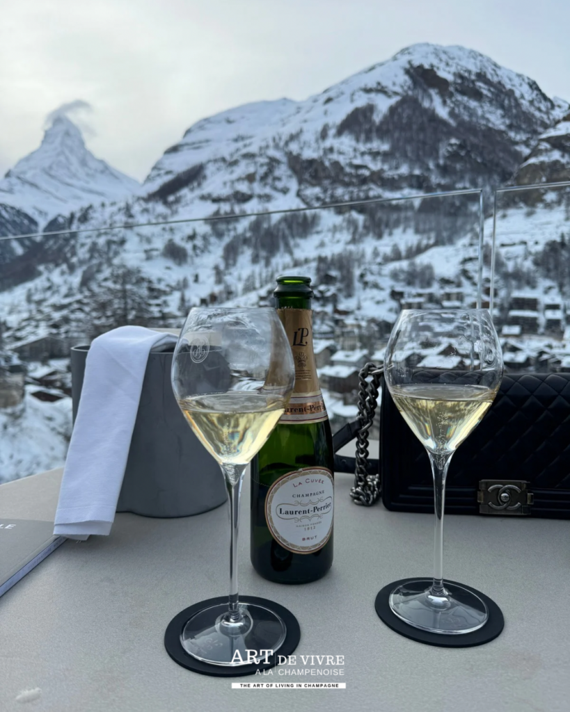 Il est des instants qui suspendent le temps. Une terrasse enneigée, l’air vif des sommets, un silence presque solennel… et dans la flûte, les fines bulles d’un Champagne Laurent-Perrier.