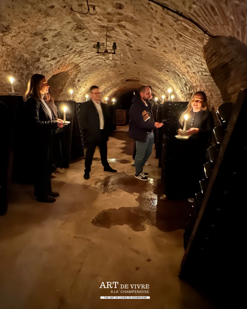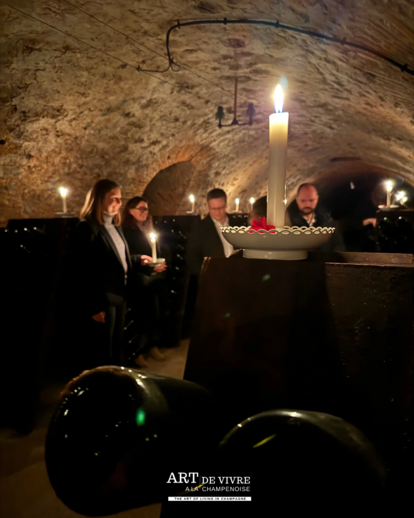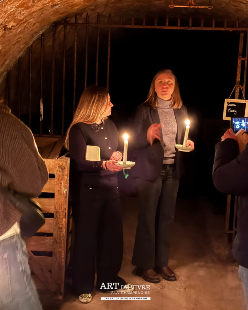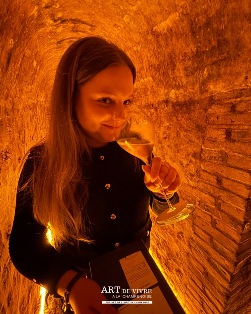 À l’occasion du lancement de la cuvée au Domaine Miltat, les deux sœurs ont imaginé une dégustation immersive en trois temps, au cœur même des galeries. Une expérience sensorielle pensée comme un dialogue entre le vin et le lieu. Salivant d’abord, soyeux ensuite, puis marqué par une longueur en bouche affirmée, le champagne révélait successivement ses nuances, accompagné de bouchées conçues pour en souligner la personnalité.