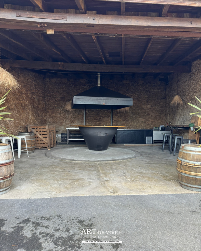 Autour de cette naissance, le domaine lui-même a connu une renaissance. Arnaud, le père de Clara, vigneron, et Céline, la mère de Juliette et Clara, ont reconverti l’ensemble en gîtes et en lieu d’événements : salons, fêtes, mariages ou anniversaires. À l’extérieur, l’ancienne extension abritant un pressoir a été transformée en un espace convivial dominé par un impressionnant brasero XXL, symbole de partage et de chaleur humaine.