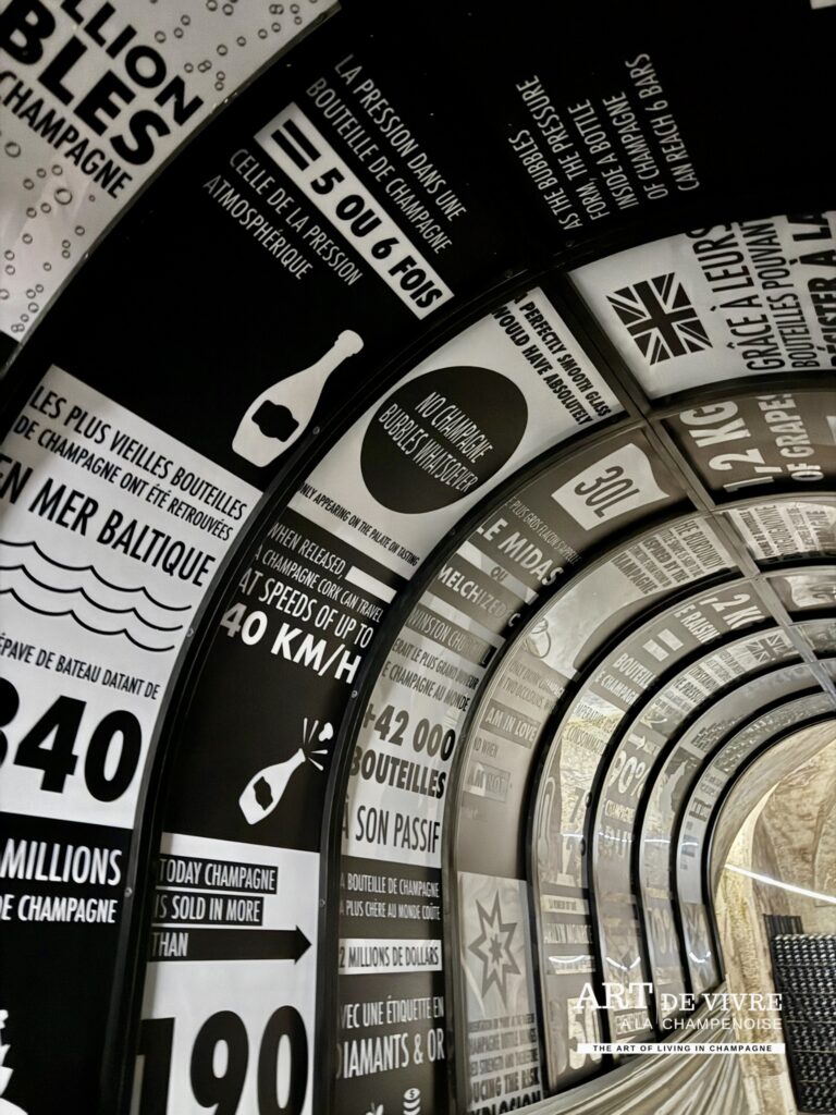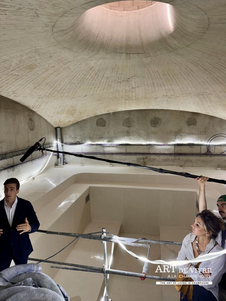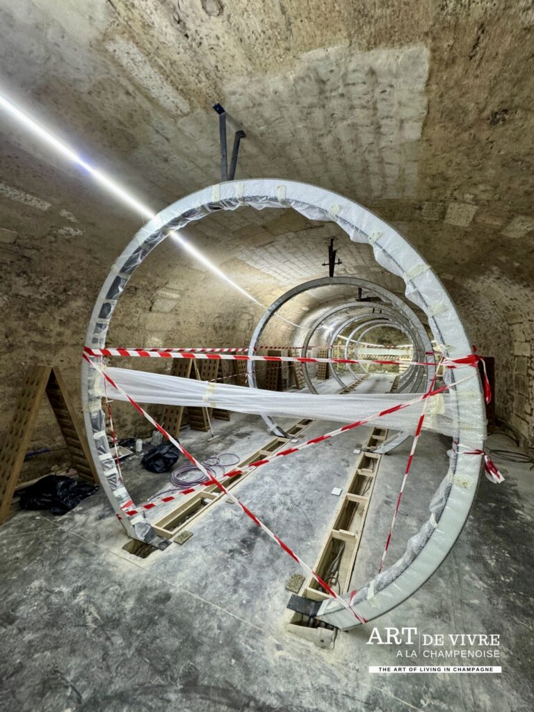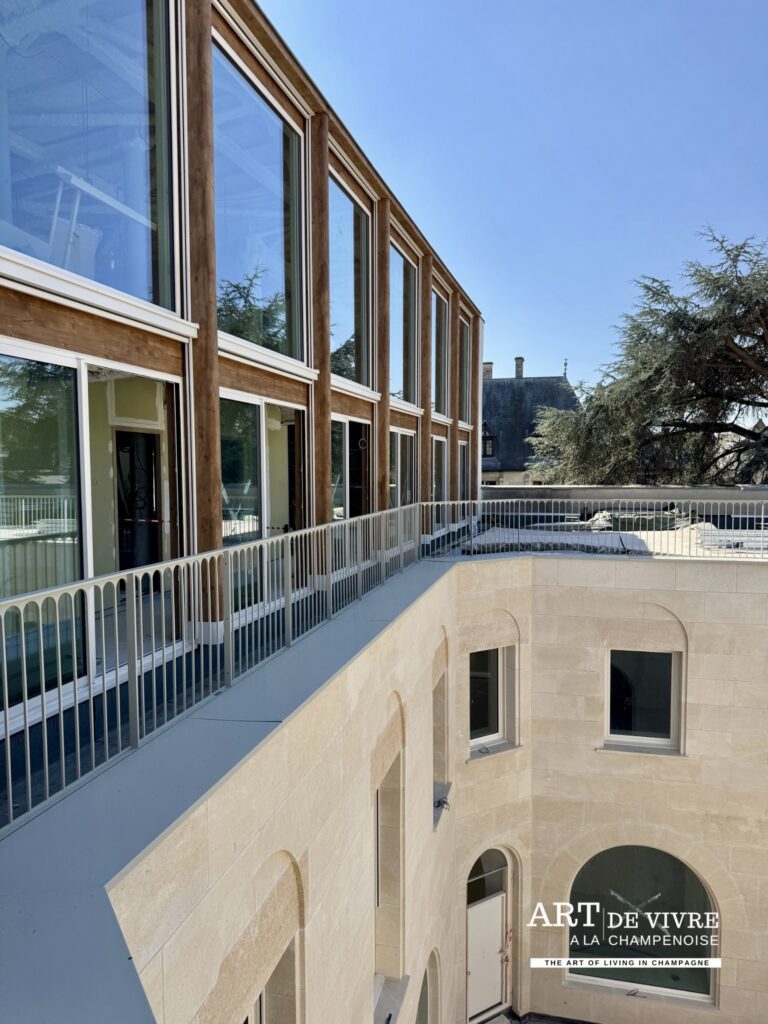 La visite se poursuivra, à partir du 8 septembre, par un circuit de caves souterraines dévoilant une cuverie ultramoderne et une vinothèque précieuse où reposent les flacons historiques depuis 1985. En fin d’année, dès le 3 décembre, l’espace hôtelier et le bar à champagne ouvriront à leur tour.