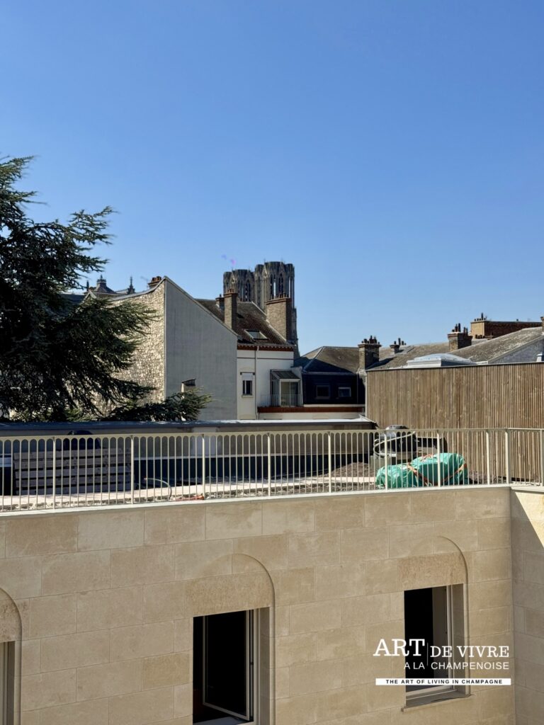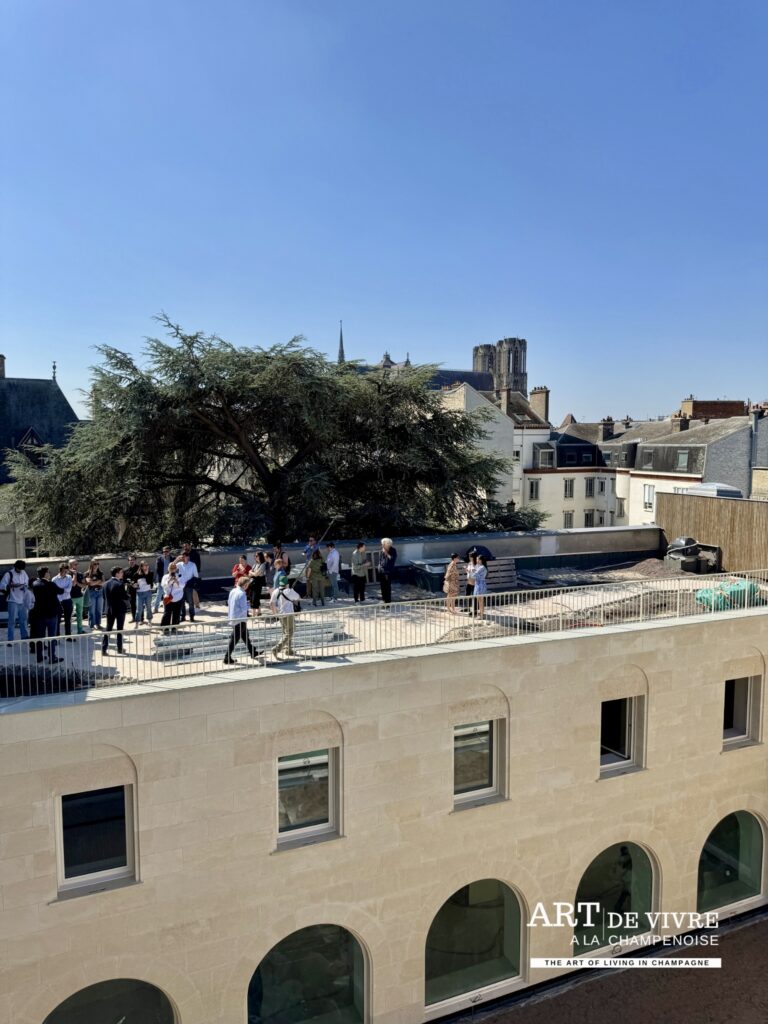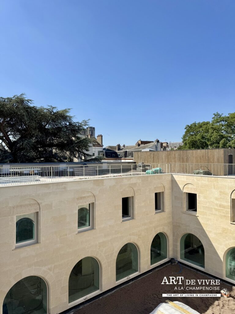 Au dernier étage, un bar à champagne lumineux accueillera les visiteurs en journée et les hôtes au petit déjeuner. D’une capacité de 30 à 40 places assises, il offrira une vue imprenable sur la Cathédrale, l’Hotel des Comtes de Champagne, et un cadre élégant pour savourer les cuvées de la Maison et autres surprises qui seront dévoilées à l’ouverture.