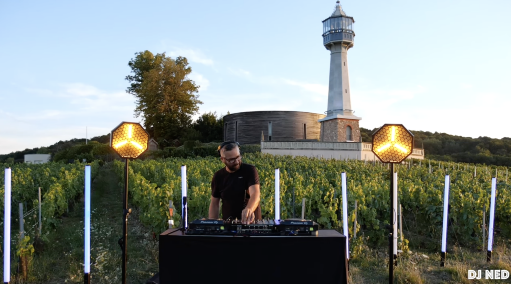 Il aime surprendre et créer des instants hors du temps. Après avoir fait vibrer des caves, le parvis d’un château ardennais ou même une montgolfière au-dessus de la Montagne de Reims, DJ NED nous offre une nouvelle performance à couper le souffle : un live dans le vignoble, au pied du phare de Verzenay.