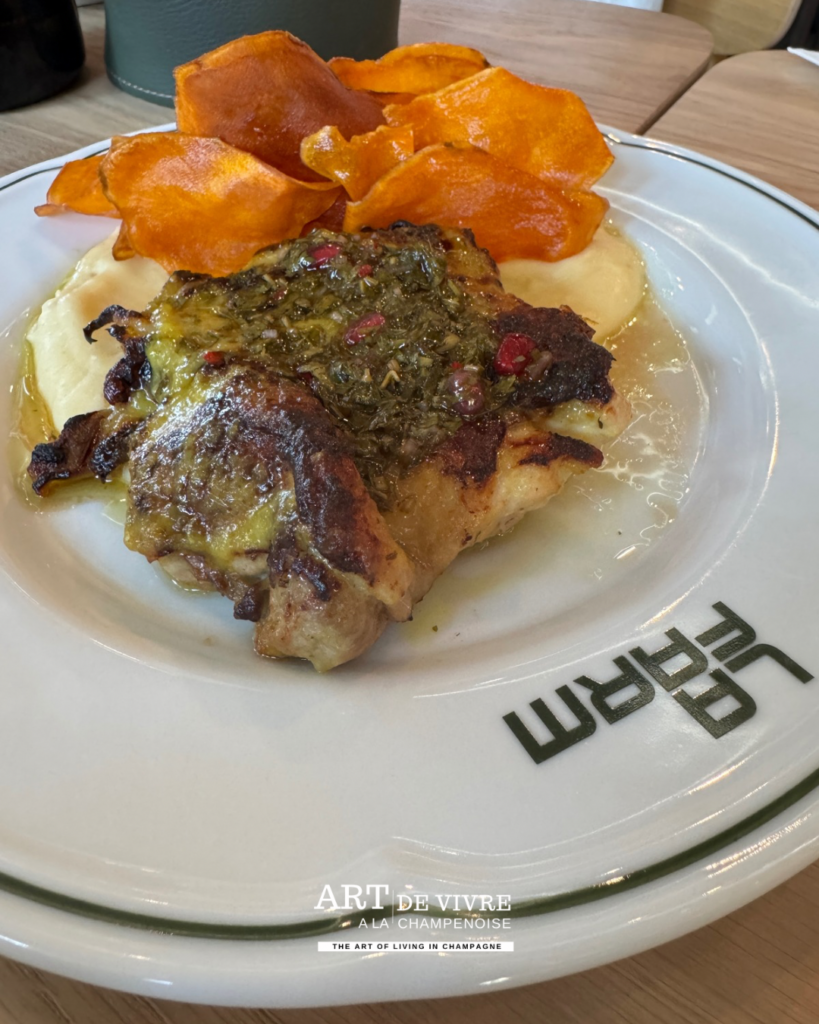 Depuis juillet 2025, le restaurant de La Farm est le nouvel écrin gourmand du lieu. Avec près de 150 couverts, une grande terrasse ouverte sur le paysage et un brunch dominical, il attire sportifs, familles et visiteurs de passage. À la carte, signée Juan Arbelaez : assiettes à partager, ceviche de saison, entrecôte braisée ou burger “Farm’ier”. Le midi, la formule déjeuner propose un plat du jour à partir de 16 €, et des menus autour de 20 à 24 €. Et vous allez vous régaler, tant les saveurs et la gourmandise sont bien présentes dans l’ensemble des plats proposés, pour une carte qui se renouvellera 4 fois par an.
