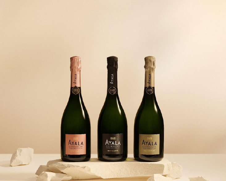 Derrière ce nouvel habillage, la gamme signature d’Ayala continue de porter haut ses convictions. Les cuvées multi-millésimées — Brut Majeur, Brut Nature et Rosé Majeur — incarnent cette recherche constante d’équilibre et de pureté.
