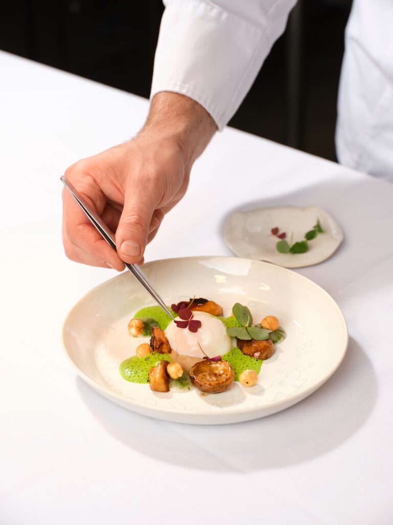 L’Œuf Hervé This aux cèpes et chutney de quetsches, la volaille de Culoiseau macérée au Belle Époque Brut et le Gâteau Belle Époque Meringa Tarta viennent ensuite rythmer ce voyage sensoriel, chaque plat dialoguant subtilement avec une cuvée emblématique.