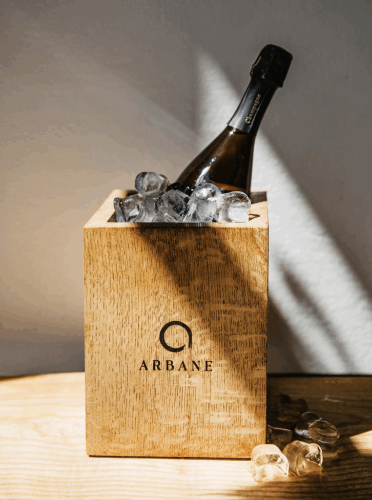 Imaginée en collaboration avec Jérôme Viard, maître-artisan de la Tonnellerie de Champagne, cette ligne baptisée Quercus Édition célèbre le chêne, symbole de noblesse et de solidité. Le chef, sensible aux matières brutes et à leur transformation, a souhaité valoriser les chutes de bois issues des forêts champenoises, en leur donnant une seconde vie sous la forme d’objets singuliers et durables.
