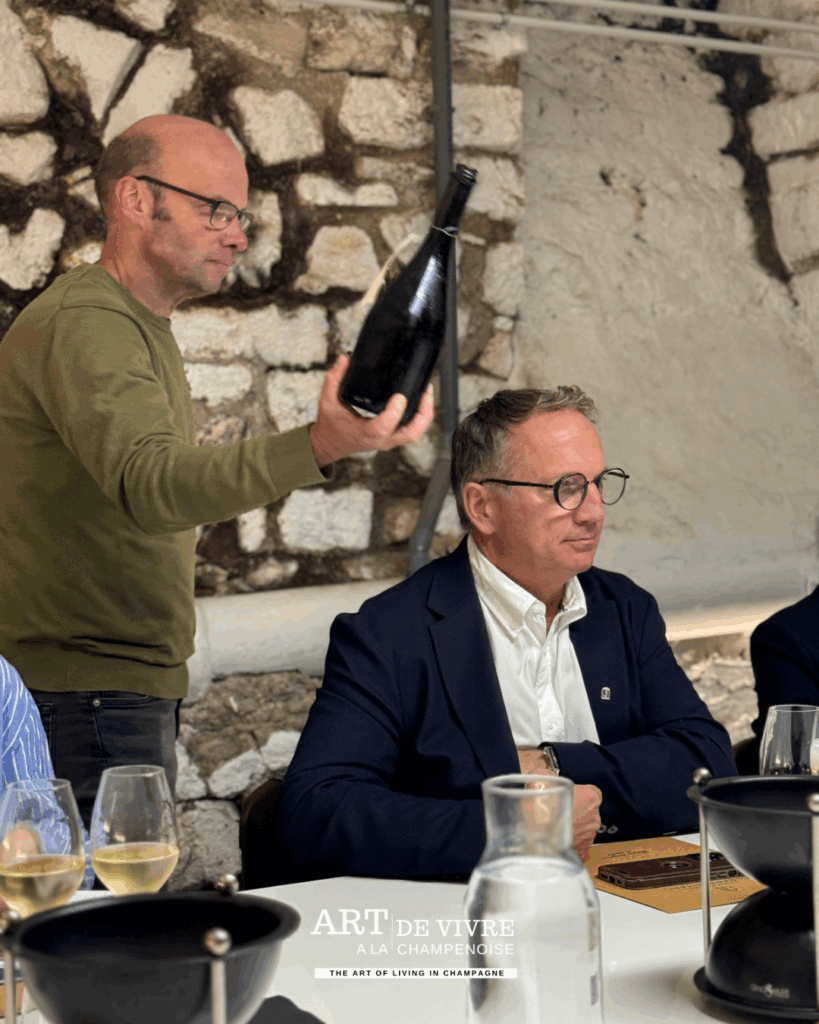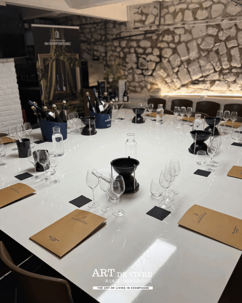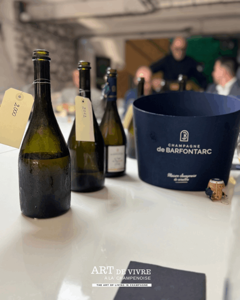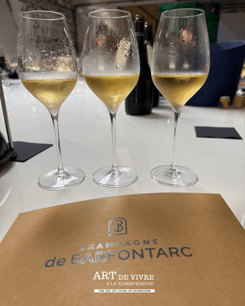 Au fil de la dégustation, la présence de l’équipe Barfontarc a donné à l’expérience une dimension presque intime. Denis Tardieu, chef de caves, en fut le fil conducteur. Sa parole se déployait avec sobriété, sans emphase, mais avec une précision qui témoignait d’années d’observation attentive. Il ne décrivait pas seulement des arômes ou des structures. Il parlait du temps, de la manière dont chaque millésime se dépose lentement dans le vin, s’affine, se nuance, trouve sa ligne sans jamais s’alourdir ,sous le regard de Johanna Afoufa, Cuviste dans la Maison depuis 2024. À ses côtés, Olivier Martin, directeur de la Maison, portait le récit collectif. Il rappelait que Barfontarc n’est pas l’expression d’une volonté individuelle, mais le fruit de vignerons unis par une même exigence, celle de laisser le terroir guider plutôt que de chercher à le faire entrer dans un cadre prédéfini. Nicolas Vallée, responsable commercial et marketing, offrait quant à lui une lecture plus large, ancrée dans la place de Barfontarc au sein de la Côte des Bar. Il évoquait avec Nicolas, une Maison solide, structurée, qui avance avec constance, loin du bruit, loin du spectaculaire convenu.