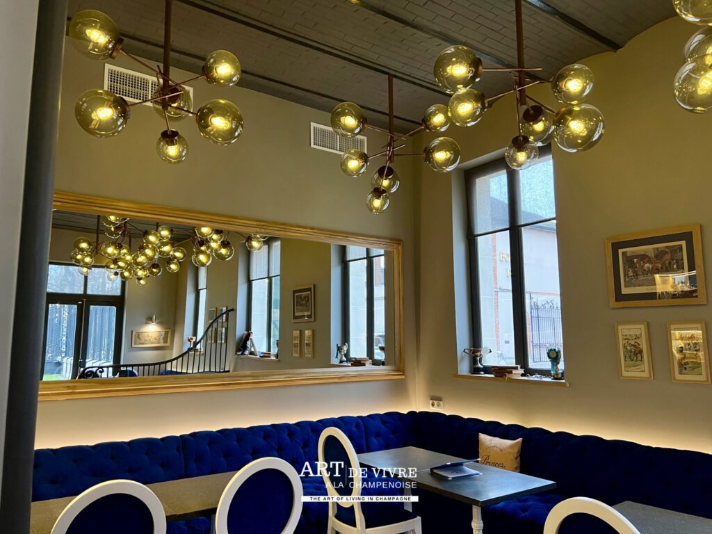 Après la visite, l’expérience se prolonge dans un lieu particulièrement convivial : L’Écurie, le bar à champagne de la maison.