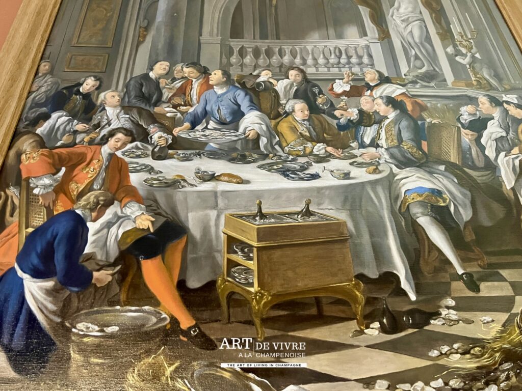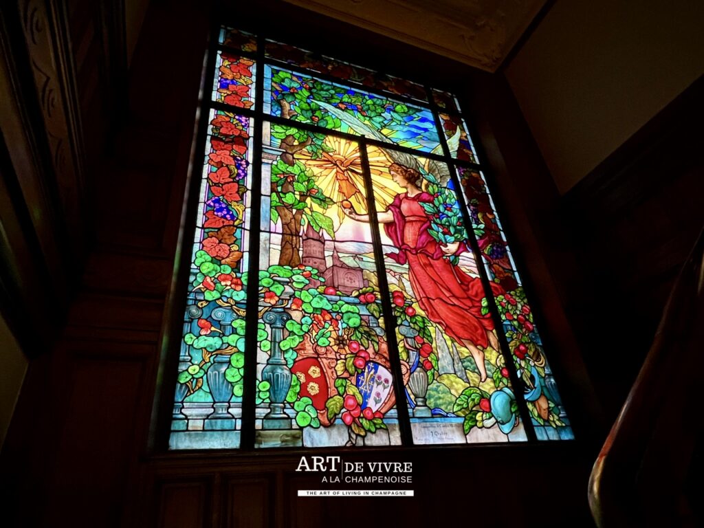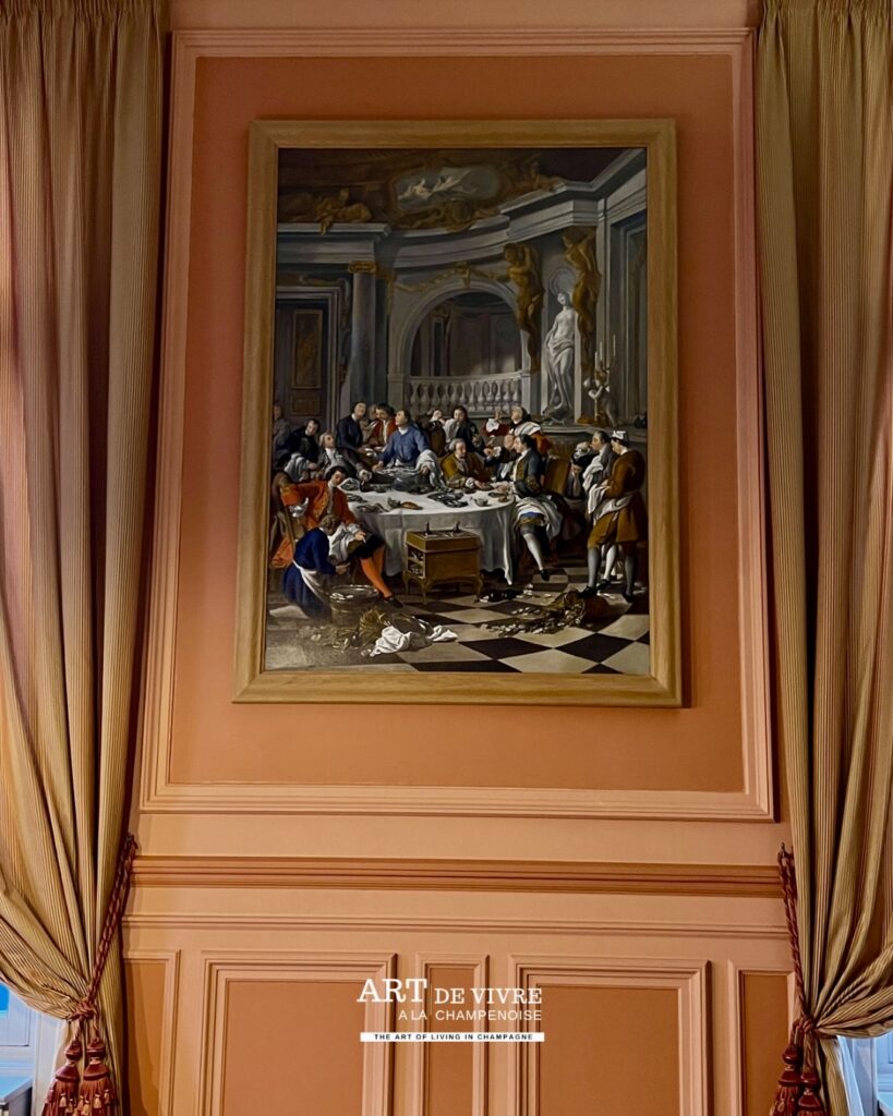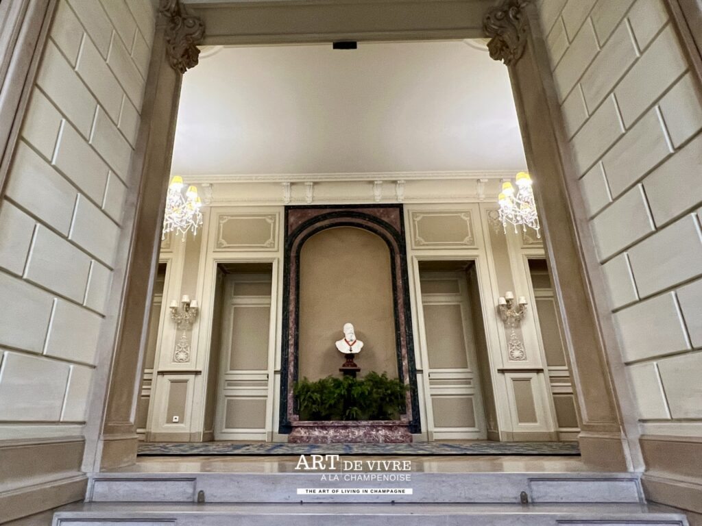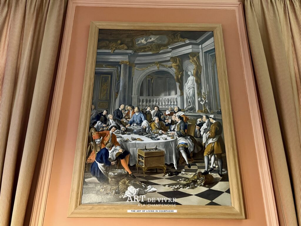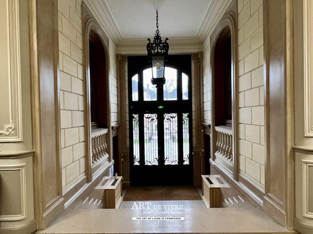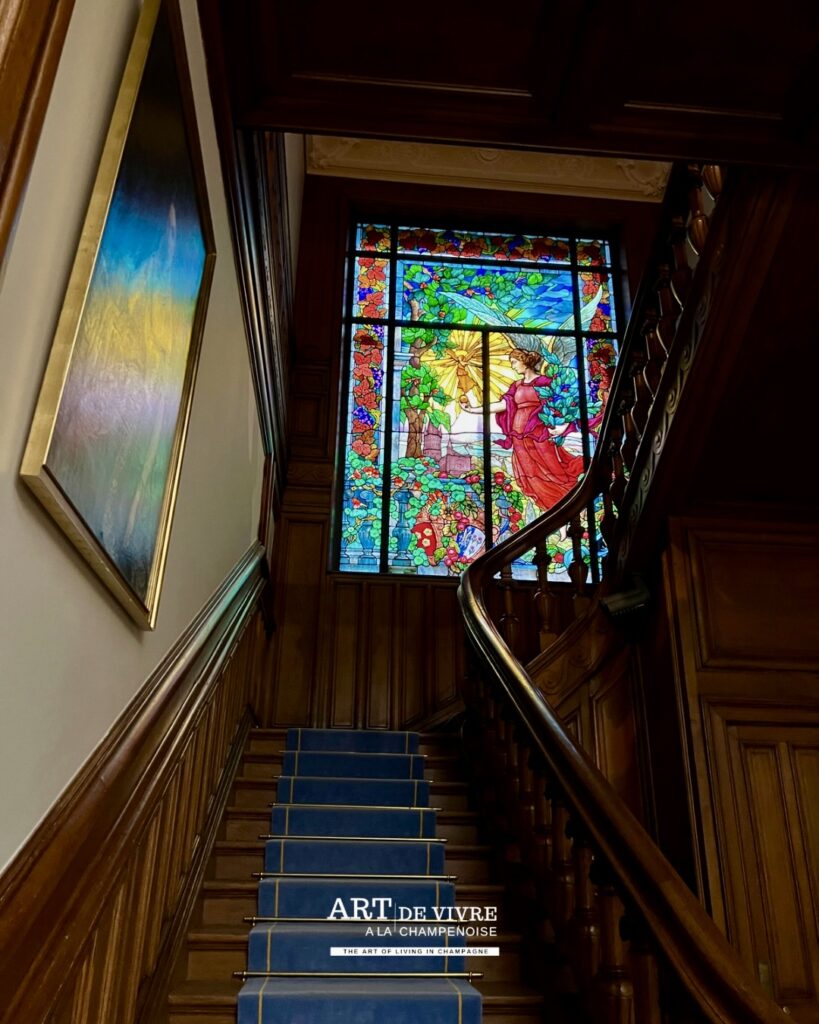 La superbe demeure est un lieu de réception des clients, mais aussi abrite les bureaux, ainsi que des pièces particulières où sont conservées les moments marquants de la Maison (Collection d’étiquettes, de capsules..) ainsi que de très belles oeuvres comme les Vitraux de Jean Gruber de 1921, une allégorie à la victoire dans la montée d’escalier ou encore une reproduction Le Déjeuner d’huîtres, un tableau de Jean-François de Troy peint en 1735 à la demande de Louis XV, 1ère représentation sur une toile du Champagne dans un des salons.