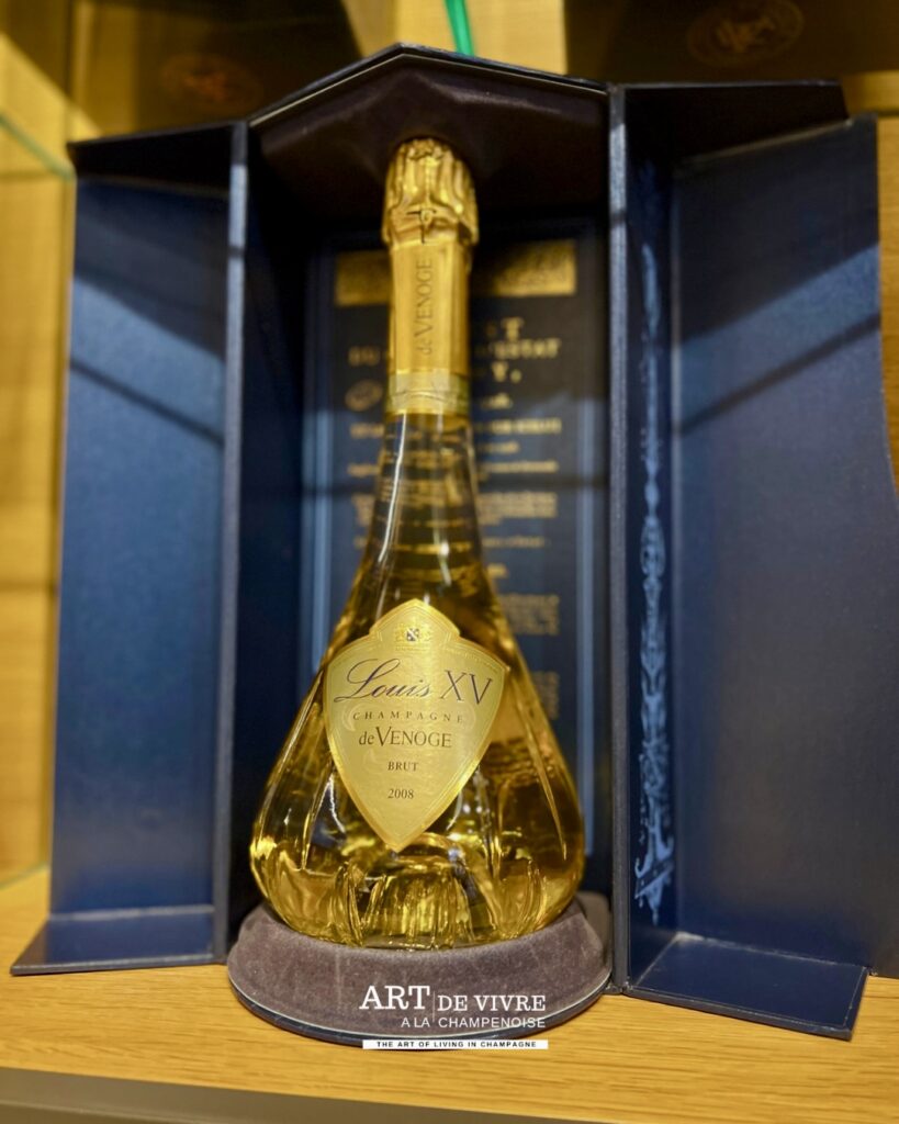 Louis XV qui par l’arrêt du 25 mai 1728, autorise uniquement aux vins de Champagne d’être commercialisés et transportés en bouteille. La prise de mousse peut enfin avoir lieu en bouteille : le Champagne était né. La Maison De Venoge, lui rend hommage en 2005, avec le Lancement de la cuvée de prestige « Louis XV », auquel le Champagne doit tant.